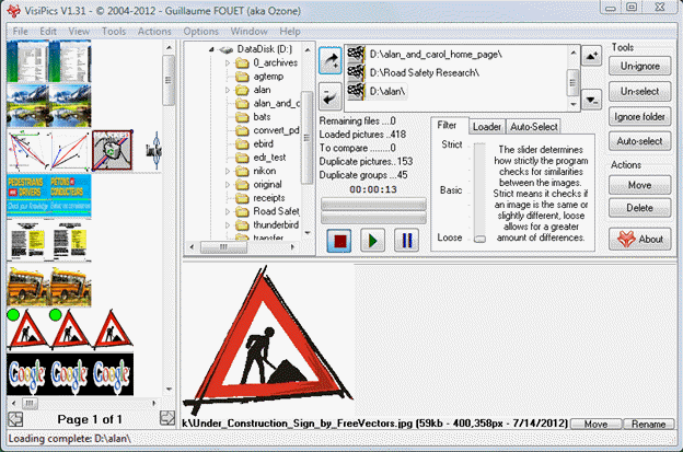 By default, VisiPics starts up with a Loose