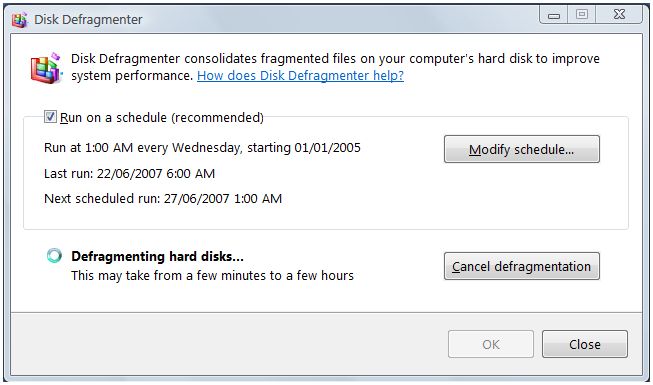 System Tools - Disk Defragmenter, a program that I use