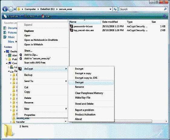 AxCrypt integrates directly into Windows Explorer and,