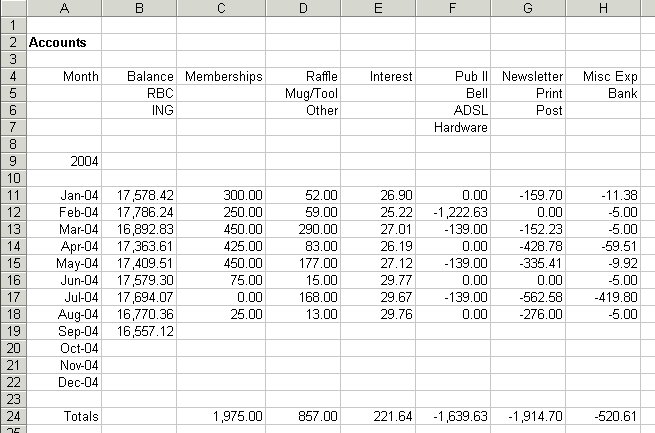 OPCUGs financial spreadsheet.