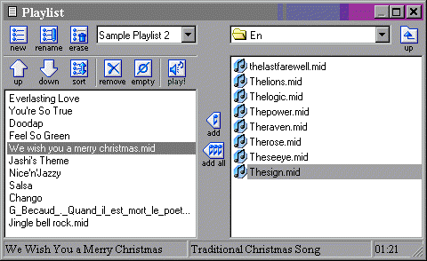 The playlist window lets you manage a list of songs that
